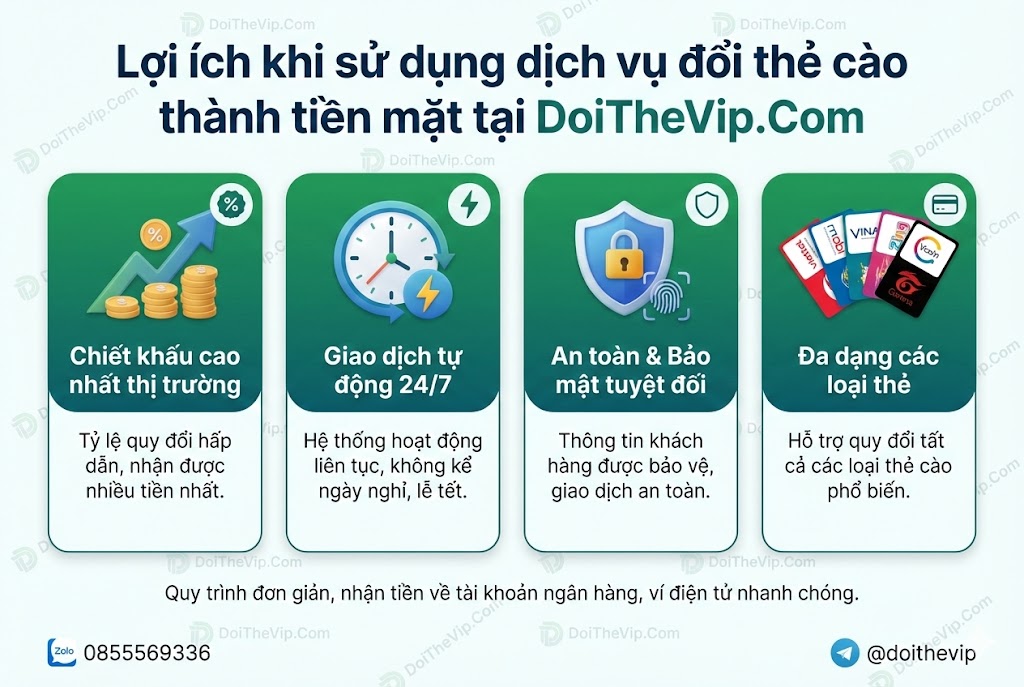 Lợi ích khi sử dụng dịch vụ đổi thẻ cào thành tiền mặt tại DoiTheVip.Com